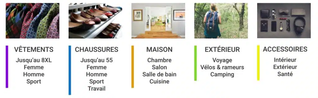 La catégorisation des produits à également été optimisée. Désormais vous retrouverez 5 familles de produits répartis de la manière suivante :- Vêtements grandes tailles.