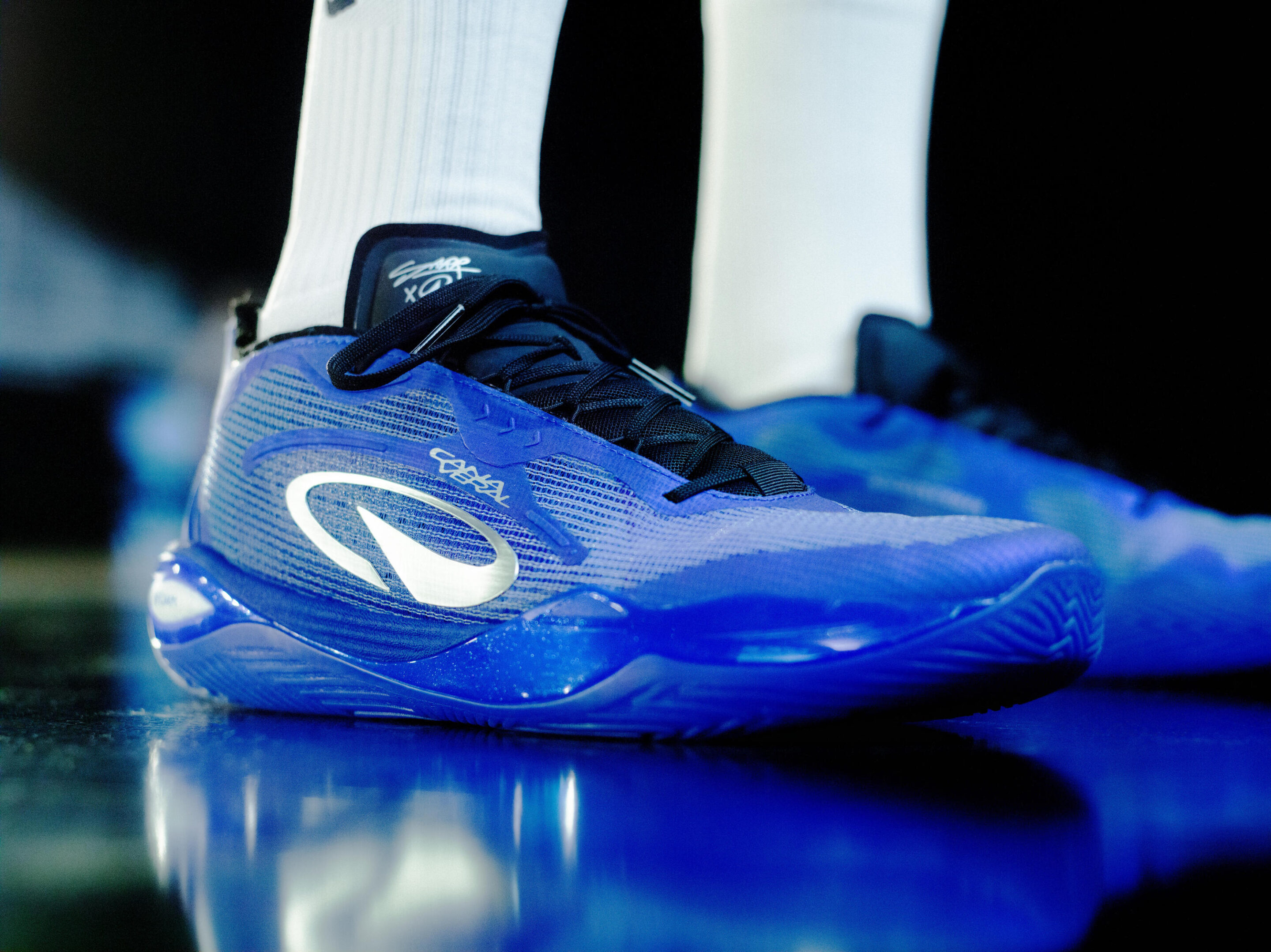 La technologie V-FOAM de la semelle intermédiaire absorbe les chocs tout en restituant l’énergie à chaque foulée, pour un rebond qui donne de l’air à ton jeu. La semelle intérieure en SCF complète ce dispositif : réactive et élastique, elle minimise la perte d’énergie et accompagne chaque reprise d’appui. Un équilibre moelleux-dynamique validé par Alex Sarr lui-même lors du développement du modèle.