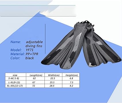Palmes de plongée réglables à talon ouvert grande taille jusqu’au 51 (17)